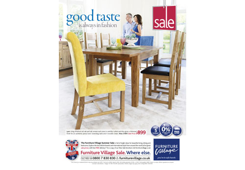 With 36 stores throughout the UK, the advertising campaigns have been created for nationwide and London based publications. The adverts will feature in Hello Magazine, Radio Times, You Magazine and ES Magazine. Furniture Village’s target market is the upper end of the price range for the moderately rich and their advertising is to establish quality, rather than price, as the distinguishing point from cheaper competitors.